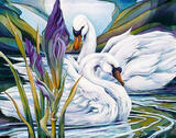 «Лебеди на озере и цветы»